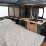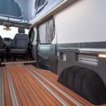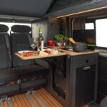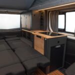 Zabudowa Camper Flex wyróżnia się ponadprzeciętną funkcjonalnością i elastycznością aranżacji wnętrza. Kluczowym elementem są pojedyncze fotele montowane na systemie szynowym, które można dowolnie przesuwać, dokładać lub całkowicie demontować. Dzięki temu pojazd może pełnić rolę 4-osobowego kampera z 4 miejscami do spania lub komfortowego transportera dla 6 osób. Dostępna w wariancie SHORT oraz LONG.