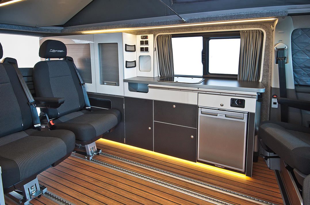 Dzięki dodatkowym 40 cm długości w porównaniu z VW T6.1 Short, a tym samym całkowitej długości pojazdu wynoszącej około 5,3 m, VW T6.1 Long oferuje znacznie więcej miejsca. Dzięki systemowi szyn we wnętrzu, Wavecamper daje możliwość elastycznej konfiguracji siedzeń lub, poprzez ich usunięcie, wykorzystania pojazdu jako samochodu dostawczego.
