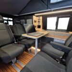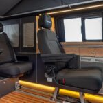 Zabudowa Wavecamper na Volkswagenie T6.1 wyróżnia się ponadprzeciętną funkcjonalnością i elastycznością aranżacji wnętrza. Kluczowym elementem są pojedyncze fotele montowane na systemie szynowym, które można dowolnie przesuwać, dokładać lub całkowicie demontować. Dzięki temu pojazd może pełnić rolę 4-osobowego kampera z 4 miejscami do spania lub komfortowego transportera dla 6 osób. Dostępne modele bazujące na wersji SHORT oraz LONG.