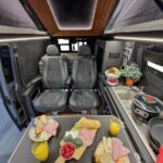 Wyposażenie zabudowy obejmuje wysokiej klasy lodówkę kompresorową firmy Dometic, rozbudowaną instalację elektryczną z dodatkowym akumulatorem, kompletną izolację z eleganckim tapicerskim wykończeniem wnętrza oraz praktyczny zlewozmywak ze szklaną pokrywą i składanym, zintegrowanym kranem. Dodatkowo oferujemy składany stolik za siedzeniem kierowcy, który można wygodnie używać również poza pojazdem, a także wiele innych udogodnień. Ważnym atutem jest kompletna zabudowa meblowa wykonana z lekkiej sklejki, pokrytej odpornym na uszkodzenia laminatem CPL, gwarantująca trwałość i estetykę nawet podczas intensywnego użytkowania.