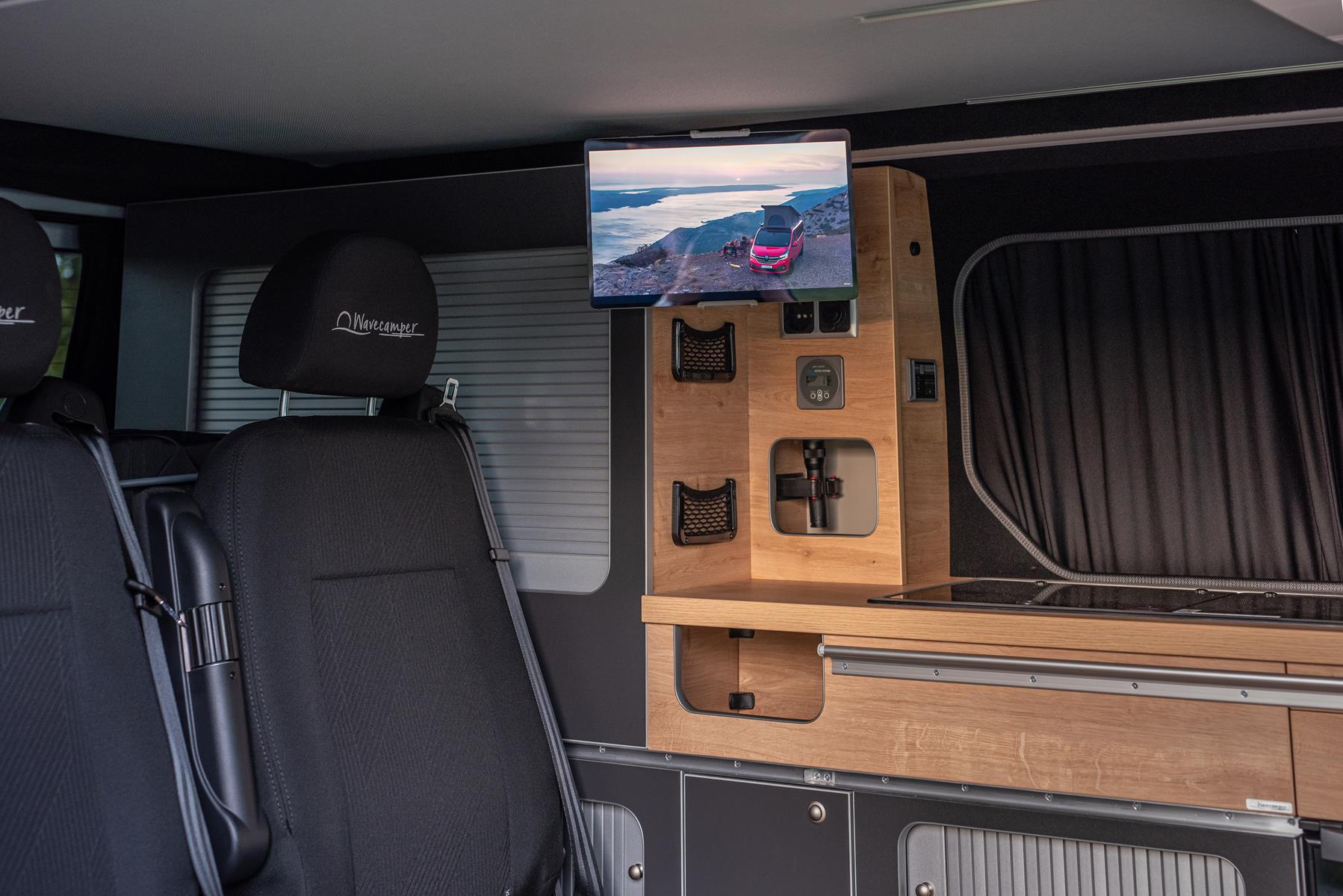 Wavecamper Volkswagen T6.1 doskonale sprawdzi się w wakacje jako pełnowartościowy kamper z czterema miejscami do spania, szafkami, ogrzewaniem postojowym czy dodatkową instalacją elektryczną.
