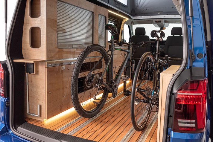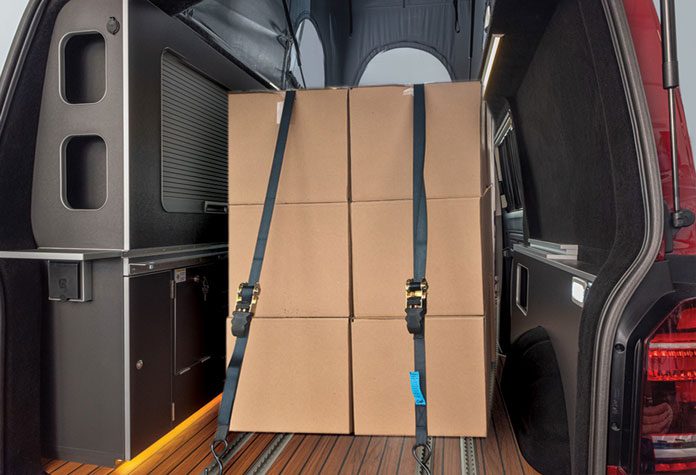Wszystkie Wavecampery bazują na podstawowym modelu VW T6.1 lub Renault Trafic i mogą być z łatwością wykorzystywane jako auta dostawcze. Nie ma przy tym znaczenia, czy auto akurat ma być użyte do przewozu dużych mebli, czy też jako rodzinny van z miejscem dla sześciu osób. Dzięki innowacyjnemu systemowi szyn montażowych można nie tylko dowolnie konfigurować ilość i położenie foteli – przy pomocy szyn, ale można również zabezpieczyć ładunek na czas transportu.